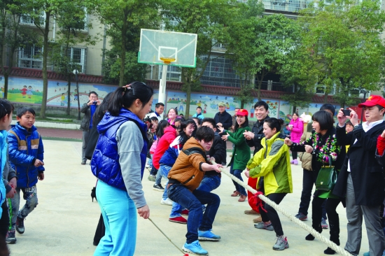 3月16日,州妇联、民盟州委组织20多位民盟盟员带着孩子来到州特殊教育学校,和学校的孩子们一起开展接力赛跑、拔河等体育活动,并为学校的孩子们送来了一些小礼品。在阳光晴好的春日里,大家共同度过了一个欢乐的星期天。 记者 向汉品 摄