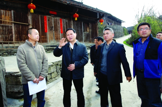 图为州委书记叶红专(左二)一行深入花垣县排碧乡十八洞村调研扶贫开发工作。 本报记者 彭 伟 摄