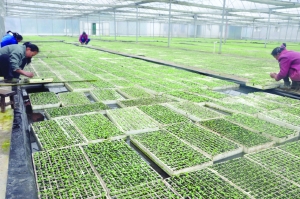今年永顺县松柏镇种烟面积1万余亩,为了再夺丰收年,基地里整垄,苗床里间苗一片忙碌。图为4月2日,村民们正在西元村苗床里间苗。 罗远程 张 伟 摄