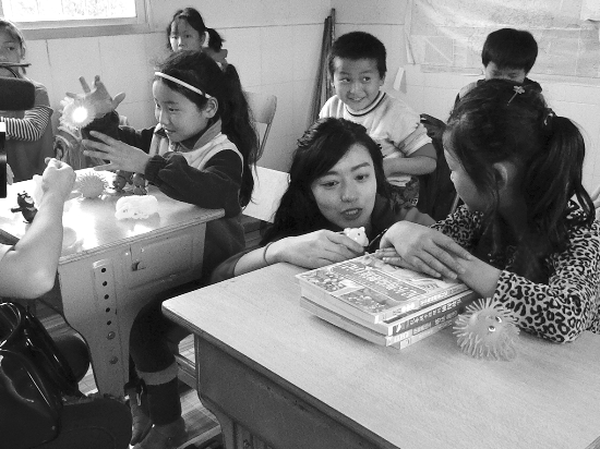 5月26日,长沙市芙蓉区琴岛演艺中心爱心人士16人,来到泸溪县梁家潭乡桐油坪琴岛演艺希望小学,为该校师生送来海尔冰箱、热水器和食物及文体娱乐用品等,价值万余元。图为爱心人士正与孩子们一起玩玩具。 张建兵 符恩来 摄