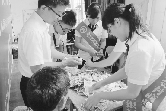 图为该行员工在清点爱心款 杨丽琼 摄