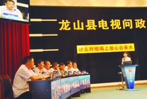 6月23日,龙山县在该县电视台举行首场《电视问政》。为确保教育实践活动向纵深发展,党代表、人大代表、政协委员和群众代表就群众关注的问题,向住建、环保、卫生等部门一把手进行问政,倒逼职能部门加速解决服务群众“最后一公里”问题。 田志波 摄
