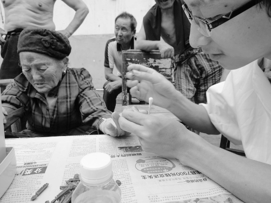 6月23日,对泸溪县梁家潭乡敬老院的老人们来说,是一个特殊而又幸福的日子。当天,该县医务人员用实际行动践行党的群众路线教育实践活动,主动上门为敬老院的老人免费量血压、身高、体重、血糖、血脂、肝肾功能、心电图、B超等体检项目,深受老人们的好评。向民贵 张玉秀 摄