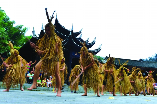 双凤村村民在表演原生态毛古斯。 本报记者 田宏贵 湘西网记者 杨思思 摄