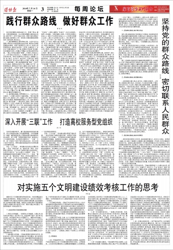 曹 普 华 我们党依靠群众路线走到今天,取得了革命、建设、改革的辉煌成就,也必然要依靠群众路线走向未来,实现“两个一百年”的奋斗目标。领导干部怎样践行群众路线、做好群众工作?我觉得,关键是要做到理想如炽、信仰如炬、责任如山。 一、坚定理想信念,恪守为民之责。习近平总书记强调,理想信念动摇是最危险的动摇,理想信念滑坡是最致命滑坡。领导干部要坚定立党为公、执政为民的理想信念,解决好世界观、人生观、价值观这个“总开关”问题,解决好“为了谁、依靠谁、我是谁”的问题,切实增强为党和人民事业不懈奋斗的使命感和责任感。一要以为民信念摒弃“骄横”。只有把人民放在心上,人民才能让你坐在台上。你离群众有多近,群众对你就有多亲。领导干部要牢记为民信念,站稳群众立场,放下架子,迈开步子,做出样子,设身处地了解民忧、倾听民声,想方设法为群众办实事、办好事,走进人心,增进感情。二要以奋进精神克服“娇贵”。习近平总书记指出,理想信念是共产党人精神上的“钙”,没有理想信念,理想信念不坚定,精神上就会“缺钙”,就会得“软骨病”。这样的“缺钙”干部就如温室里的花朵,轻飘飘地浮在上面,不下基层、不接地气;软绵绵地有气无力、未老先衰;颤巍巍地对待矛盾、躲躲闪闪,平常时候看不出来、关键时刻站不出来、危急关头豁不出来。领导干部要主动到条件艰苦、环境复杂、矛盾集中的地方去干事创业,在与群众心连心、同甘苦、共命运中克服“娇贵“之气,接通扎根基层的地气,淬炼迎难而上的锐气,涵养清正廉洁的正气,提升开拓创新的豪气。三要以求是态度祛除“矫情”。坚持从实际出发,真正进百姓门、吃百姓饭、察百姓情,把群众利益放在第一位置,把群众需要作为第一追求,把群众呼声作为第一信号,切实摸清群众脉搏,把事关群众“不显山不露水”的小事、琐事、杂事做好,把打基础、利长远、惠民生的事情办好。 二、践行群众路线,常怀爱民之心。习近平总书记指出:“人民群众是我们力量的源泉。”我们党的根基在人民、血脉在人民、力量在人民,领导干部要对群众怀有真情,带着感情做好群众工作,始终保持与群众的“鱼水深情”。一要在思想上敬民。领导干部要牢固树立人民至上的群众观,常怀敬仰之情,坚持问政于民、问需于民、问计于民,积极汲取群众的智慧与力量;常有敬重之念,始终站在人民群众的立场上,一切为了人民、一切相信人民、一切依靠人民;常存敬畏之心,认识到“水能载舟,亦能覆舟”,在人民群众面前永远战战兢兢、如履薄冰,以群众需要为“风向标”,以群众满意为“标准尺”,主动为民服务,接受人民监督。二要在情感上亲民。只有我们把群众放在心上,群众才会把我们放在心上;只有我们把群众当亲人,群众才会把我们当亲人。我们要深怀公仆之心,沉下身子,放下身段,深入田间地头、农家庭院、工厂车间,和群众面对面地交谈,心贴心地交流,多关心群众的民生疾苦,多了解群众的真实想法,对群众难题揪心、为群众办事热心、帮群众致富真心,不断增进党群干群之间的深情厚谊。三要在行动上靠民。毛主席曾指出:“真正的铜墙铁壁是什么?是群众;依靠民众则一切困难能够克服,离开民众则将一事无成。”小岗村的实践告诉我们,群众是推进改革的真正英雄,大包干就是群众的创造。群众是改革的直观体验者,落实三中全会精神、深入推进改革,必须充分发挥人民群众的主体作用,到群众中去听取群众意见、收集群众智慧,在群众利益充分表达的基础上形成共识、作出决策,确保改革“不走弯路”“不绕远路”。 三、强化宗旨意识,多办利民之事。全心全意为人民服务是我们党的根本宗旨,善于做群众工作是我们党的优良传统和政治优势。我们要牢固树立宗旨意识,切实为群众诚心诚意办实事、尽心竭力解难事、坚持不懈做好事。一要勤勤恳恳惠民生。按照国家新的扶贫标准,全州尚有贫困人口85万,占农业人口的36%,湘西消除贫困、改善民生、全面小康的任务十分艰巨。我们要始终秉持“衙斋卧听萧萧竹,疑是民间疾苦声”的为民情怀,以“等不起”的紧迫感、“慢不得”的危机感、“坐不住”的责任感,大力发扬自力更生、艰苦奋斗的优良传统,千方百计调动全州各族人民抓发展、谋发展的积极性和主动性,下大力气保障和改善民生,让群众有更好的教育、更稳定的工作、更满意的收入、更可靠的社会保障、更高水平的医疗卫生服务、更舒适的居住条件、更优美的环境,最大限度凝聚起脱贫致富、共建小康的强大合力,确保与全国全省同步全面建成小康社会。二要兢兢业业保民安。坚持做到“三心”:首先是贴心,多换位思考,多从群众角度看问题,了解群众真正的想法与苦衷,用群众听得懂的语言、信得过的方式,教育说服群众,平息群众怒气,帮助解决问题。其次是耐心,善于运用群众喜闻乐见的方式向群众宣传党的方针政策,循循善诱、不厌其烦地向群众讲清情况、说明道理,以情感人、以理明人、以法服人,解疑释惑、化解矛盾。再次是细心,认真细致地从源头上预防和减少矛盾纠纷,采取群众易于接受的方式,多管齐下协调利益冲突,将纠纷协调在萌芽状态,把矛盾化解在初始阶段。三要扎扎实实化民怨。如果说惠民生、保平安是做“加法”,那么化民怨就是做