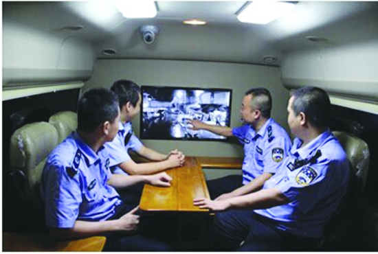 为推进城乡同建同治,实现精细化管理,吉首市行政管理执法局近日新装备一台多功能指挥车,可在执法过程中多功能指挥车全程录像,以便在有争议时提交有关人员查阅。车身配备红外功能摄像头,在探照灯配合下,夜间画面也能像白天一样清晰。车内约6平方米,设有4张座椅和一张办公桌。图为7月20日,该局镇溪大队工作人员正在多功能指挥车上采集现场信息。 高莉声