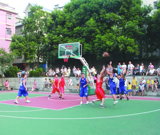 泸溪县“锦锋杯”第二届篮球联赛由湖南锦锋建筑有限公司冠名,比赛于7月15日至8月5日在该县政府篮球场和县橘颂广场篮球场分别进行,16支队伍参赛。图为7月27日比赛现场。 向民贵 袁 洋 摄