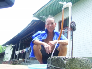 8月12日,泸溪县洗溪镇峒底坪村小长坡自然寨81岁的老人石光辉,看着家门口哗哗流出的自来水,露出了幸福的笑容。 峒底坪村坐落在高山之上,水源缺乏,村里青壮劳力大多外出务工,以往,村民要到三里之外的山脚下取水,特别是每逢干旱,村民饮水用水更难。今年年初,该县环保局、县总工会、县国税局、县工商银行与当地村民一道,寻找水源,制订引水规划,筹资60多万元启动了该村各组人饮工程建设,在今年旱季来临之前全部完工,解决了1538名村民的饮水难题。