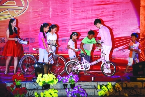 第三届泸溪县大学生返乡艺术节暨留守儿童圆梦晚会于8月10日在该县盘瓠文化广场圆满落幕。湘西大学生联合会泸溪分会,一直秉承“感恩家乡、投身公益、志愿服务”的理念,积极投身“幸福泸溪”建设,他们利用寒暑假乡村支教、为留守儿童进行才艺培训。在艺术节晚会上为白沙镇梁继坤等6名贫困留守儿童送上了梦想已久的自行车、复读机、学习机、手机等并提供了助学金3000元。