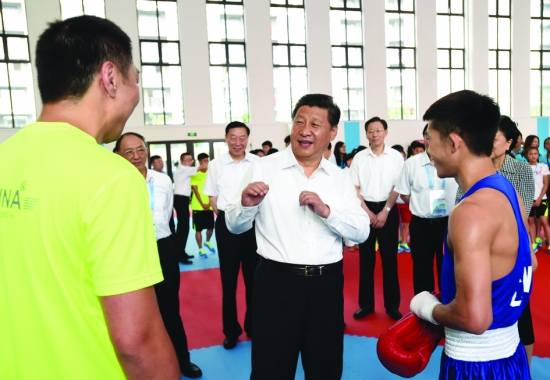 8月15日,中共中央总书记、国家主席、中央军委主席习近平来到南京青奥会运动员村,亲切看望参加本届青奥会的中国体育代表团。 新华社记者 马占成 摄