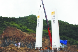 8月29日,2个高23米的液化天然气低温储罐在湘西华润燃气吉首秦年湾气化站吊装成功,这是我州目前最大的液化天然气储存设备。据介绍,每个储罐重近46吨,储气量达9万立方米,可充分保障吉首地区天然气用户用气需求。该气化站正在紧张建设中,预计今年底投入使用。目前,吉首地区已有天然气用户3000余户,铺设天然气管道10余公里,城市管道天然气建设进入快速发展时期。