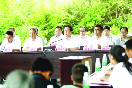 省纪委常委王前良(前排左二),州委书记叶红专(前排左三)参加并指导凤凰县大坡村党支部专题组织生活会。 本报记者 彭 伟 摄