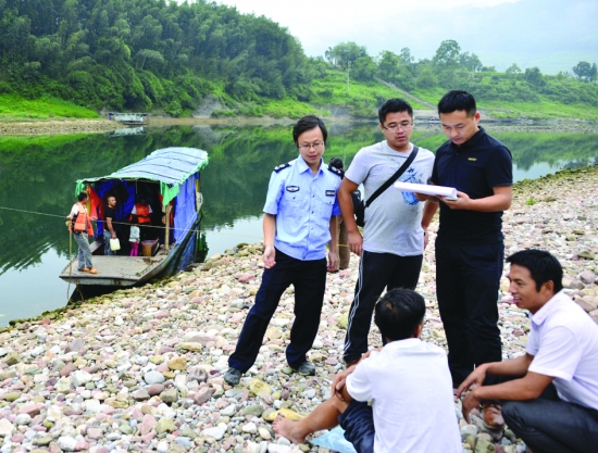 永顺县润雅乡牢固树立安全发展理念,坚持“安全第一,预防为主,综合治理”的方针,在全乡范围内深入开展安全生产大检查,有效预防和控制各类生产安全事故的发生。图为检查组对该乡麻阳村石桥渡口渡船发航签单情况进行检查。 特约记者 覃遵奎 通讯员 向水生 覃晓术 摄