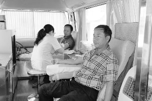9月3日,花垣县排碧乡政府两名党员干部主动到流动采血车上献血。当天,州中心血站在该乡开展无偿献血活动,该镇100余名党员干部踊跃参加了献血。 龙实夫 摄