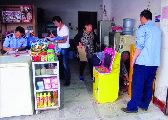 9月11日,泸溪县工商局执法人员正在城区学校周边清查非法经营游戏机场地。连日来,该县工商局对城区学校周边有从事游戏机个体经营户进行清查和整顿,当场拆除了违规从事游戏机39台,下整改通知书16份。 向民贵 葛建军 摄