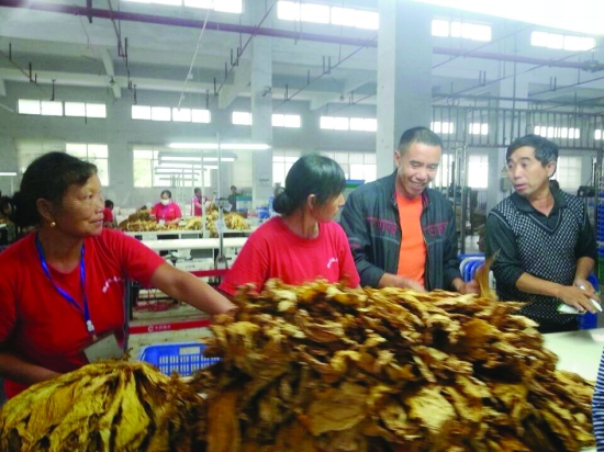 9月18日,泸溪县浦市镇烟站内,烟技人员正在给达岚镇烟农交来的烟叶进行定级。烟叶收购从9月初开秤以来,该县设浦市、兴隆场两个收购点,严格按销售合同,实行精准预约挂号式收购,实现烟叶收购的快速高效,受到烟农的好评。据县烟办负责人介绍,今年因受洪灾影响,预计可收购烟叶1.75万担,目前全县累计收购2045担,均价6.4元/公斤。 章永恒 石成华 摄
