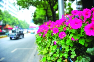 为减少汽车尾气污染,增加城市色彩,吉首市园林处特意挑选了石竹、红菊等开花时间相对较长的花卉品种,在城区交通十字路口、重要路段,广场以及景观绿地等重要场所进行摆放,为城市增色。10月26日,还是农历寒露时节,吉首人民路护栏上的鲜花却刚刚盛开。 本报记者 张 谨 摄