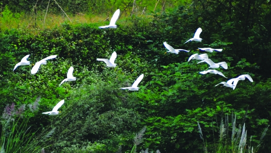 10月25日,一群白鹭在吉首市峒河边飞翔。近年来,吉首在环境污染整治上下大力气,成为全省14个地州市中空气质量最好城市。 本报记者 张 谨 摄