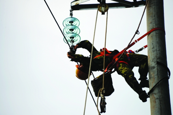 11月5日,永顺县电力公司的电力工人在城郊35千伏海杨线上的18米高压杆上连接线路。连日来,该公司对海杨线(海洛电站至杨公桥)全长23公里的线路全面进行技术改造,以消除安全隐患,保障电力安全平稳运行。 刘文化 宋 涛 摄