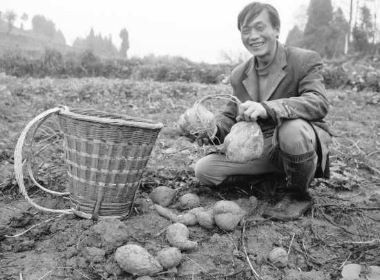 11月1日,保靖县水银乡官庄村村民唐文忠,在他家的红薯地里挖得“孪生”红薯,总重4.3公斤,大的2.7公斤,小的2.1公斤。据当地老农家介绍,“孪生”红薯之重属于罕见。“我当时只用了些羊粪作底肥。”唐文忠透露了其中的种植奥秘。 唐文贵 摄