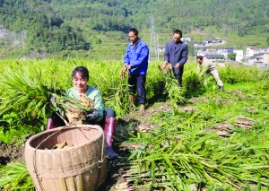 11月14日,凤凰县三拱桥乡大田村村民龙求华一家正在地里收获生姜。 龙求华种生姜3亩,产量7500公斤,仅此一项收入8万多元。该村在州人口计生委、计生协建设扶贫工作组的帮助下,大力调整产业结构,今年发展蔬菜、生姜等种植业156亩,村民收入显著提升。 田晓辉 杜 玲 摄