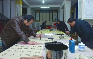 12月7日,龙山县里耶镇秦简书法协会的会员在练习秦隶书法。秦隶体是秦朝统一全国后使用的文字体,也是秦小篆向汉隶过渡时期的文字体。该协会先后11次去外地参展,深受当地书法家与爱好者的喜爱,宣扬了秦城里耶深厚的文化底蕴。 本报记者 田宏贵 摄