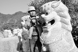 ▲12月8日,永顺县吊井乡吊井村赵章飞正在加工狮子口中的石球。 赵章飞今年52岁,从事石匠手艺24年,雕刻出数以千对大大小小的石头狮子,实现了增收致富之梦。