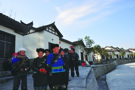 湘西州是国家武陵山片区区域发展与扶贫攻坚试点地区和全省扶贫攻坚主战场,腊尔山台地上海拔800米的凤凰县米良乡吉乐村整合资金开展精准扶贫建房,为苗族困难群众提供了一个可以借鉴与复制的扶贫建房模式,目前已有39户贫困农民搬进了新居,还有82栋正在修建,今年年底可全部建成。图为12月8日,搬进新居的苗族阿婆们在新居前聊天。 本报记者 张 谨 摄