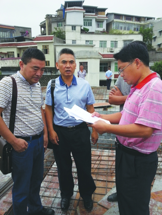 州住建局、州规划处主要负责人在凤凰超标楼房现场办公。邓文伟 摄