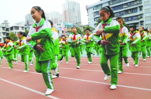 1月8日,吉首大学师范学院附属小学的同学们正在进行土家族摆手舞比赛。当日,吉首大学师范学院附属小学举行土家族摆手舞比赛,此次活动的开展,在校园上演最炫的民族风,让学生感悟民族传统文化的魅力,进一步传承和弘扬民族文化。 彭 彪 摄