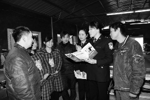 1月23日,州公安局禁毒支队民警来到湘西经济开发区吉凤街道双河社区,向群众讲解新型毒品的危害并发放禁毒知识手册。当日,共向群众发放禁毒宣传资料1000余份。自全国公安机关开展“百城禁毒会战”以来,该支队多次组织民警走入社区、家庭、农村、学校、企业和公共场所,运用多种形式向群众传播禁毒知识,增强了广大群众识别毒品、远离毒品的自觉性。 李进辉 摄