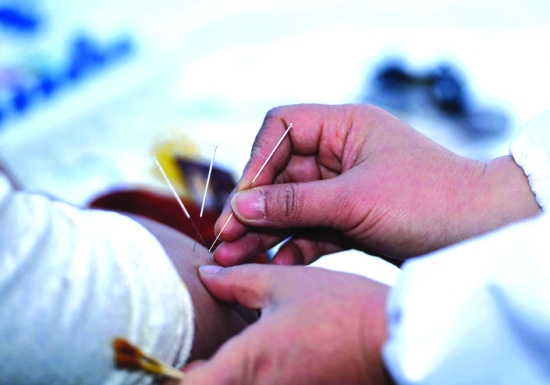 刚从浙江打工回来的谭家村村民向维芝在做针灸理疗,因在外治疗不方便,回家后她来医院已治疗几天,预计农合报销后,她只需花200多元医药费。