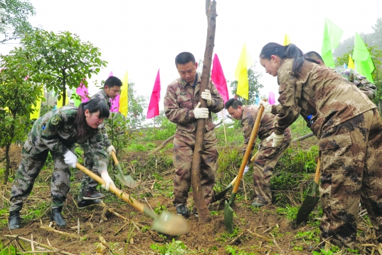 泸溪县千余名党政机关干部和军警参加义务植树活动绿化家园。 李焱华 王 芳 摄