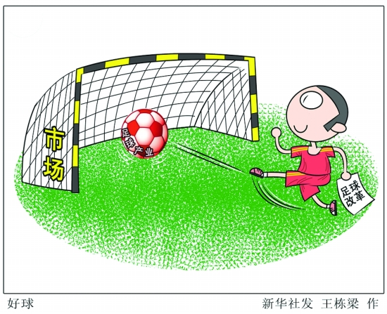 今年2月召开的中央全面深化改革领导小组第十次会议审议通过了《中国足球改革总体方案》。这是新中国成立以来中央首次为一个单项运动出台改革方案。 把绿茵场还给孩子,让想踢球的孩子有球可踢;把足球产业还给市场,让市场给足球发展注入活力———对如何落实方案,来京参加两会的代表委员和业内人士提出积极建议。 新华社发 王栋梁 作