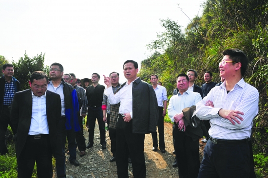 3月25日下午,州委书记叶红专(中)率领州市及相关部门的领导在乾州新区就搞好州府新城学校建设项目现场办公。 本报记者 张 谨 摄