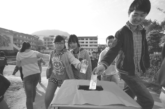 4月13日,花垣县团结中学学生在捐款。当天,该县“希望工程一元捐”公益助学捐赠活动在该校举行,学生们自发捐上节约的一元零花钱。 龙恩泽 摄