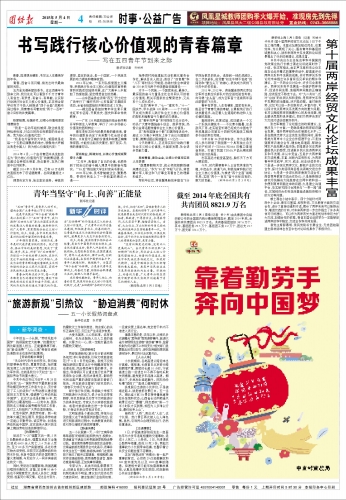 新华社北京5月3日电(记者 黄小希)由共青团中央组织部公布的全国团内统计最新数据显示,截至2014年底,全国共有共青团员8821.9万名;共有基层团组织387.6万个,其中,基层团委29.3万个,基层团工委2.2万个,团总支21.7万个,团支部334.4万个。