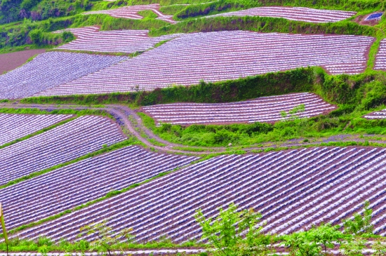 4月底,保靖县野竹坪镇1500亩高山反季蔬菜完成覆膜。今春以来,野竹坪镇抓住海拔高,适合种植反季蔬菜的优势,发展了4个蔬菜专业合作社,种植萝卜、白菜、茄子、西红柿等反季蔬菜,群众脱贫致富走出了一条新路。 特约记者 彭司进 摄