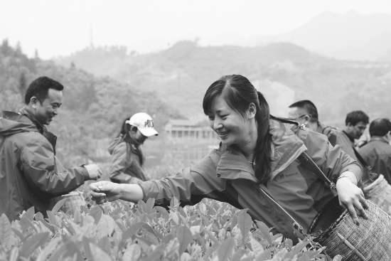 4 月底,州委党校2015年中青班51名学员来到古丈县罗依溪镇茅坪村,开展“三进三同”体验式教学活动。三天里,学员们“进乡进村进农户,同吃同住同劳动”,吃住在农家,劳动在田地,还给贫困村民送去了慰问品。图为学员们在帮助当地村民采茶。 洪银亮 唐金辉 摄