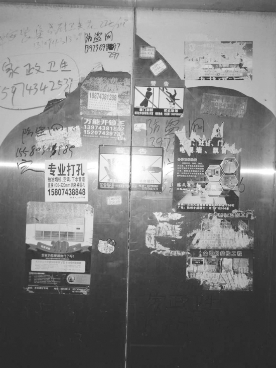 水畔铭城居民区内随处可见的“牛皮癣”。