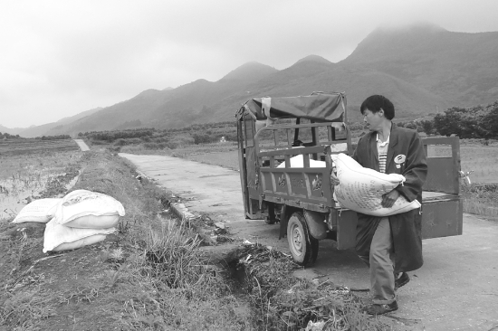 5月17日,保靖县清水坪镇黄连村的农资销售员石忠茂,把化肥送到了田间地头。近年来,该县农资部门依托县乡村三级农资配送网络,采取统一品牌、采购、配送、价格的措施,群众能享受到电话预约,送货上门和免费技术指导等服务,受到广大农户的交口称赞。 俞采华 陈亚平 摄
