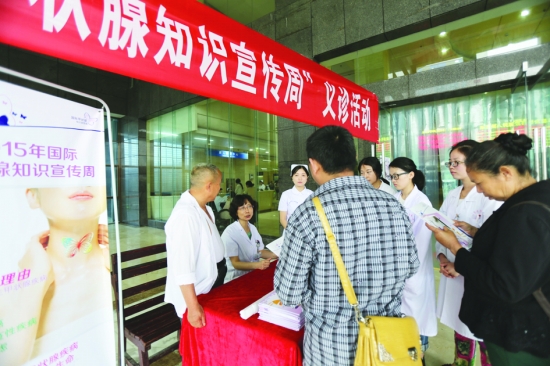 5月29日,值国际甲状腺知识宣传周,为进一步普及甲状腺疾病相关知识,提高公众对甲状腺疾病的关注度,科学预防、治疗甲状腺疾病,州人民医院内分泌科举行2015年“国际甲状腺知识宣传周”义诊活动,向群众介绍甲状腺疾病知识,免费发放相关宣传手册资料。 涵 子 摄
