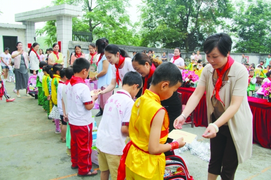 6月1日,湘西经济开发区团工委、妇联、社会事务管理局组织工作人员以及爱心人士来到湾溪小学看望慰问优秀少先队员和贫困儿童,给小朋友们送去节日的祝福。 胡大湘 摄