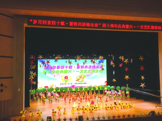 6月1日,吉首市第二幼儿园在市武陵山大剧院里举办了建园四十周年文艺庆典暨“六一”汇演。市第二幼儿园(又名乾州民族幼儿园),由全国优秀教育工作者黄玉霞创办于1975年,已有40年历史,开园至今多次被省教育厅,州、市教育局评为幼儿教育先进集体,并被州教育局评为首批州示范幼儿园,连续十年被市教育局评为优秀幼儿园。 本报记者 赵欢 摄