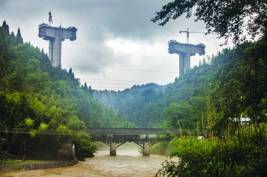 5月29日,正在建设中的龙山县红岩溪特大桥。该桥为龙永高速公路控制性工程之一,建成后将与河面上一座百年土家族凉亭桥相映成趣。龙永高速是湖南省“七纵九横”高速公路路网规划的重要组成部分,为湘鄂两省西部土家族苗族地区一条重要的出省通道,全长91.086公里,总投资133亿多元。2017年建成通车后,龙山至吉首的车程由目前的6个多小时缩至2个小时,到长沙的时间从目