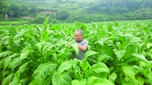 6月17日,泸溪县白羊溪乡毛坪村烤烟大户杨秀书正在田间查看烤烟生长情况。今年以来,该乡按照“抢时令、抓进度、保质量、增效益”目标,有效提高了烟农积极性,全乡掀起种烟热潮,烤烟种植面积达800余亩。去年,杨秀书种了30亩烤烟,收入6万元,今年多种了20亩。他说,按目前的样子,每亩单产可在240斤左右,50亩烤烟丰收在望。