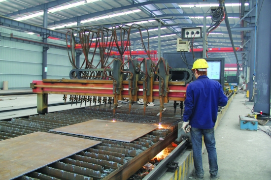 6月23日,湘西经济开发区恒瑞钢构公司工人正在生产。该公司目前是武陵山片区唯一一家实力雄厚、技术力量强、科技含量高的钢结构、檩条、彩板生产及施工企业。1至5月,公司实现销售收入1972.6万元,较去年同期增长56.7%。 胡大湘 摄