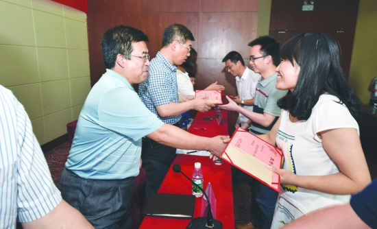 州委宣传部副部长肖世辉,团结报社社长、总编辑刘世树等领导为2014年度团结报社优秀通讯员颁奖。