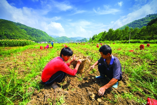 7月18日,龙山县石牌镇农民在地里收获百合。百合种植与加工已成为石牌镇主导产业,全镇农户90%以上的收入来源于百合种植加工,年鲜百合交易量达2万吨左右。百合产品远销上海、杭州、武汉、广州、郑州等地,百合种植给当地农民带来了可观的经济效益。 曾祥辉 摄