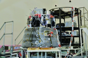 “实践十号”返回式科学实验卫星在总装测试中(资料照片)。
